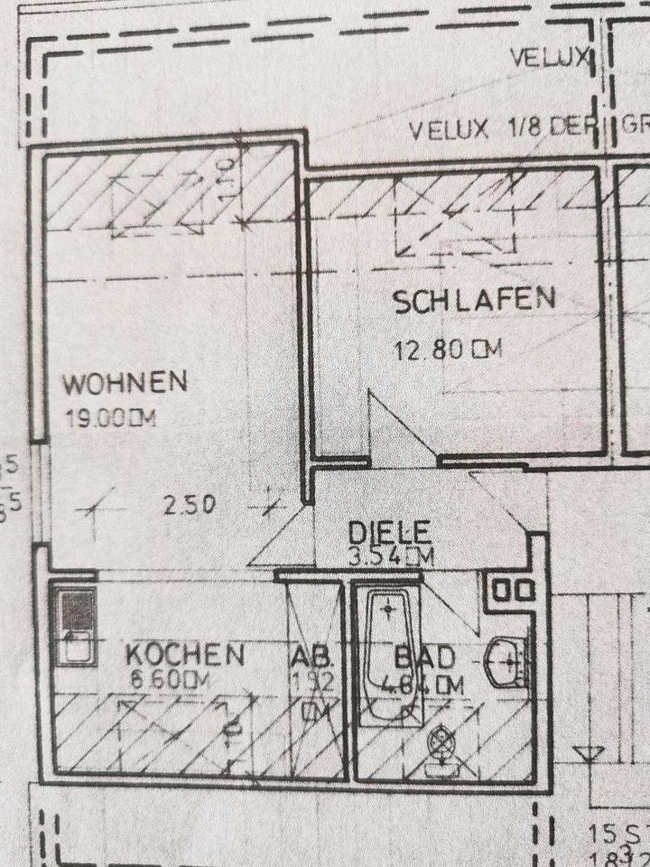 Helle 2,5 Wohnung 50qm im ruhigen 6Parteienhaus im DG